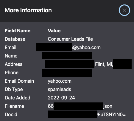 Now, I figured I could place Reginald at the Flint home by looking at the timestamp of the data breach. In this case, it was a large Consumer Leads file dump. Another reason why I love Darkside so much is that I can check to see when the breaches and leaks occurred. In this case…